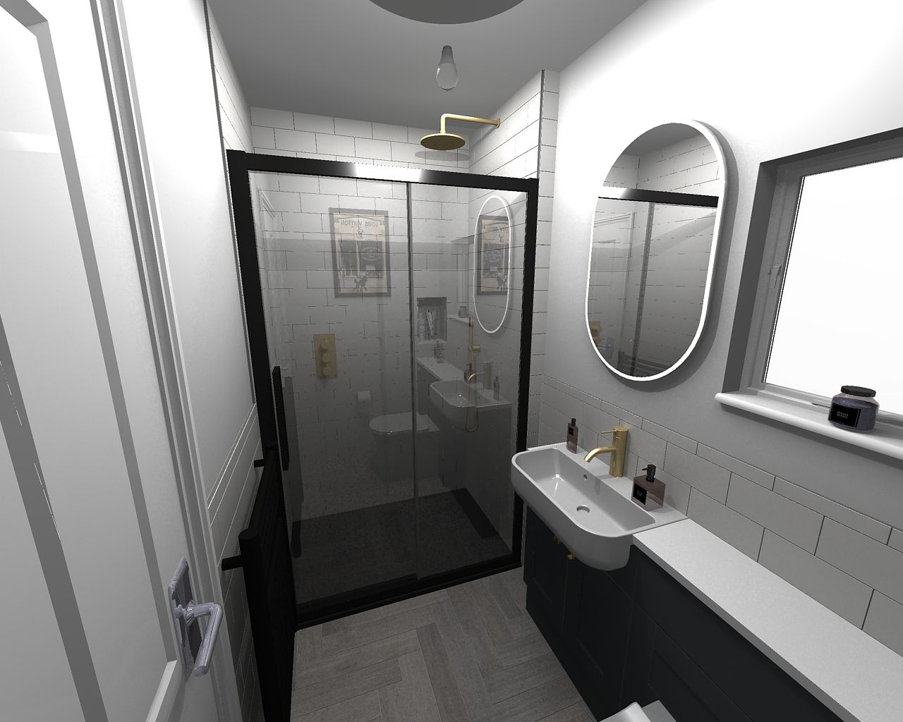 Designing a shower room in Sidcup with classic style furniture, brushed brass taps, a spacious shower, grey color scheme, and metro tiles is a fantastic choice for creating a timeless and elegant bathroom space. Balneo Design specialises in providing high-quality bathroom design and supply services, making them an excellent choice for your project.